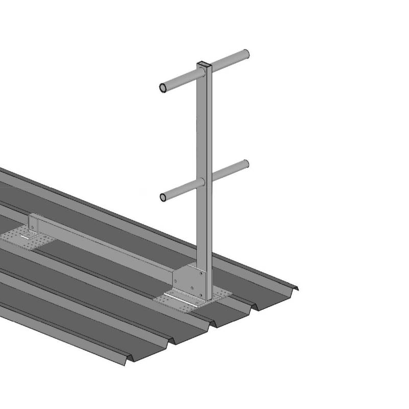 Juego de placas de montaje para parapetos FIT y BOLD instalados sobre chapa metálica (distancia entre centros de 250 mm). Incluye 8 remaches de fijación a la chapa metálica y neopreno para sellar la placa a la chapa.