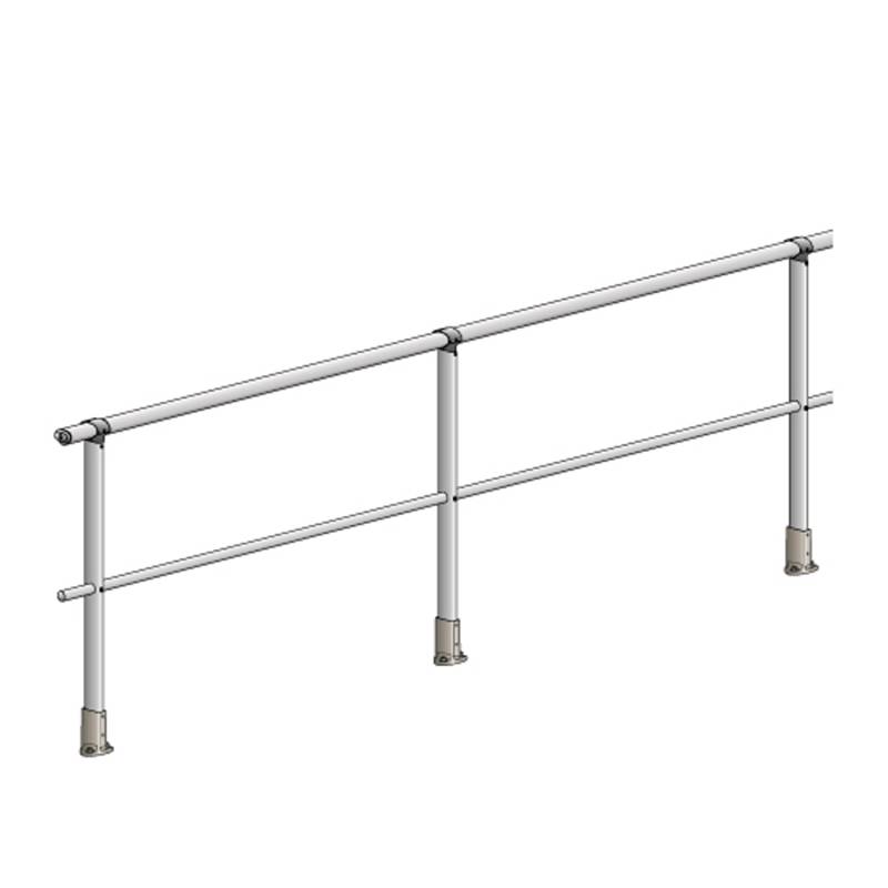 Parapeto de aluminio con soporte fijo para fijación al suelo.