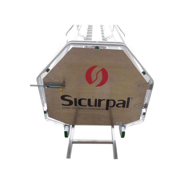 Scala a gabbia in alluminio con lunghezza variabile, a seconda delle necessità. comprensiva di staffe e sbarco.