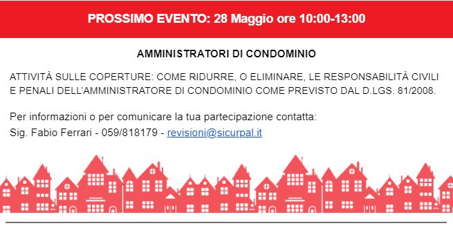 Sicurpal organizza l'evento formativo rivolto agli Amministratori di condominio dal titolo: