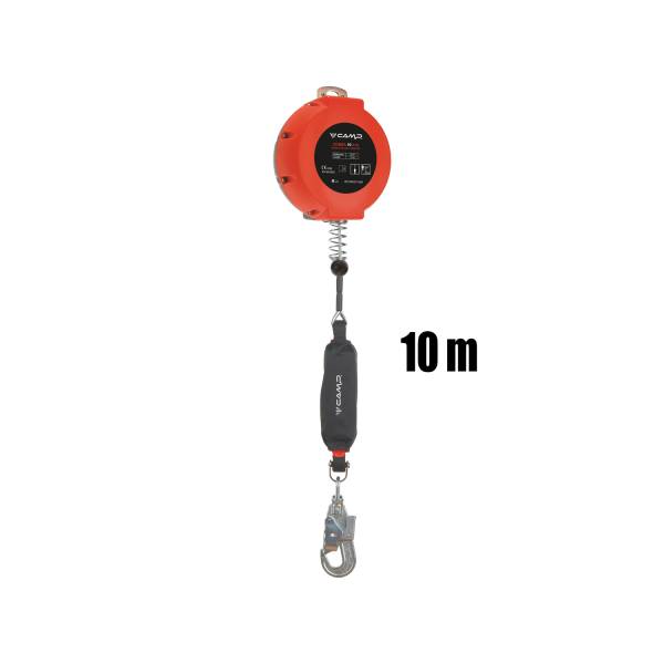 Dispositivo anticaduta retrattile, lunghezza cavo in acciaio zincato di 10 m. Certificato anche per utilizzo orizzontale/inclinato grazie all'assorbitore di energia esterno. Dotato di assorbitore di energia e connettore girevole.