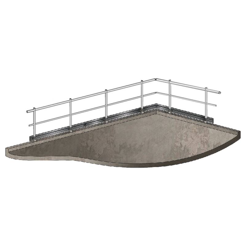 Parapetto in alluminio con staffa fissa per fissaggio a pavimento.