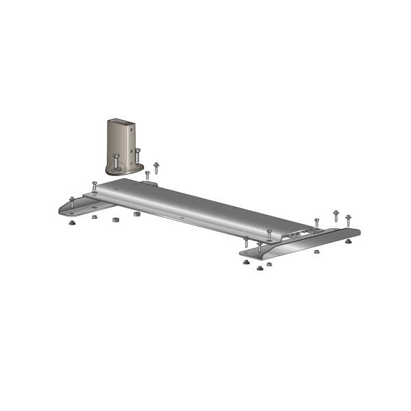 Base per parapetto su lamiera con passo di 250 mm. Da installare parallela alla lamiera, perpendicolare al parapetto.Viti autofilettanti e rondelle escluse.