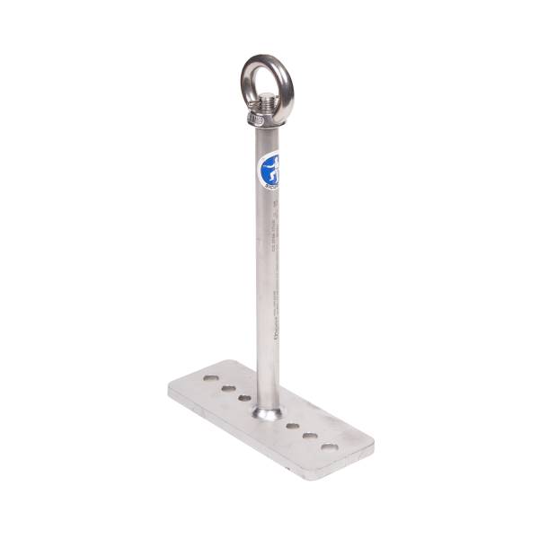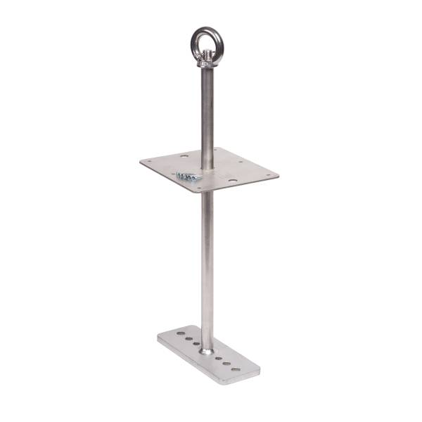 Dispositivo di Ancoraggio EN 795 tipo A con forma a paletto di altezza 50cm fornito con vincolo. Golfare semigirevole sull'estremità compreso. Costruito in acciaio inox 304 decapato