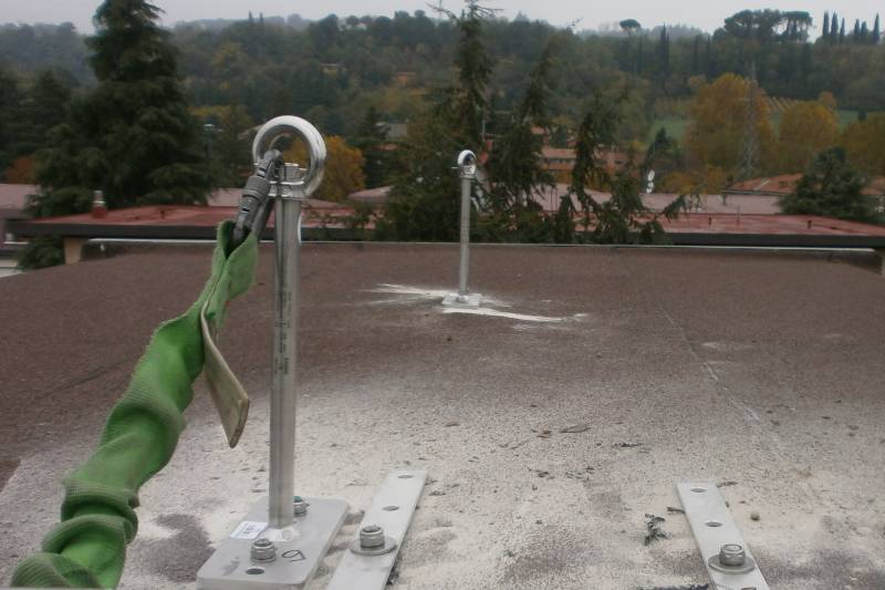 Il dispositivo di ancoraggio fisso ST8 è la soluzione ideale per eliminare l’effetto pendolo nelle coperture a due falde, garantendo sicurezza e stabilità. Progettato per durare nel tempo, è realizzato interamente in acciaio INOX AISI 304 decapato e certificato secondo le normative vigenti.