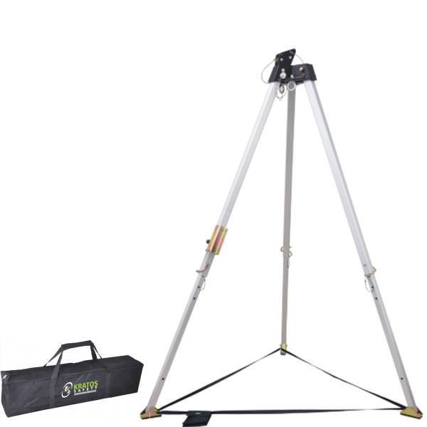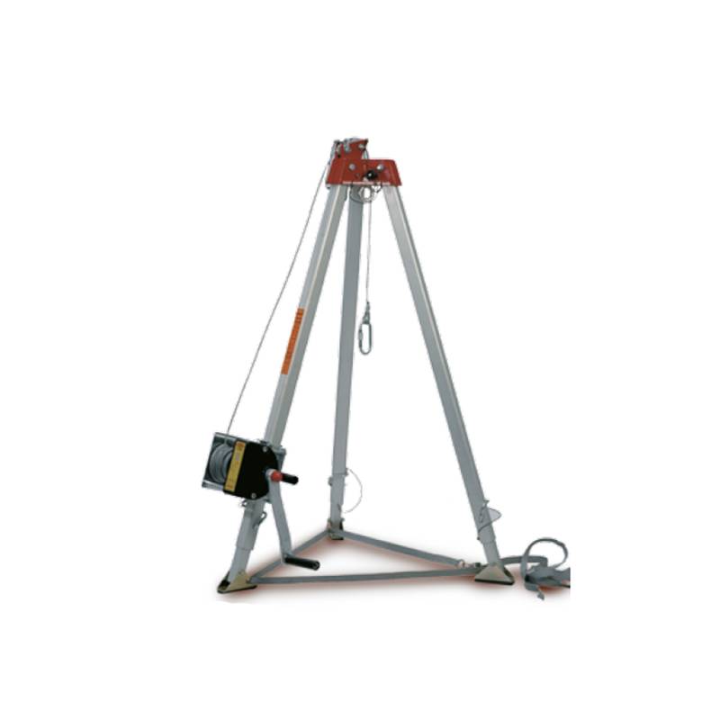 Supporto Treppiede per recuperatore 30 m Olympe dotato di supporto di ancoraggio, una puleggia e un connettore