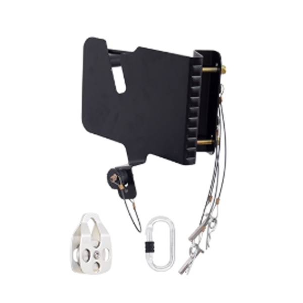 Kit di Adattamento Treppiede per Anticaduta dotato di piastra di ancoraggio, una puleggia in alluminio con gola in inox e un connettore