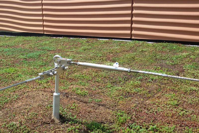 I giardini pensili sono una delle migliori soluzioni per l’isolamento termico, ma richiedono una manutenzione frequente. Per questo è necessario prevedere, in fase progettuale, un sistema che garantisca la sicurezza degli operatori addetti. Sicurpal ha trovato la migliore soluzione a questa esigenza: PTV è un sistema anticaduta a tenuta garantita in soli 8 cm di terriccio vegetale; sfruttando i pesi dei vari componenti del sistema, è infatti possibile garantire il fissaggio di quest’ultimo senza forare né la copertura, né lo strato di impermeabilizzazione.